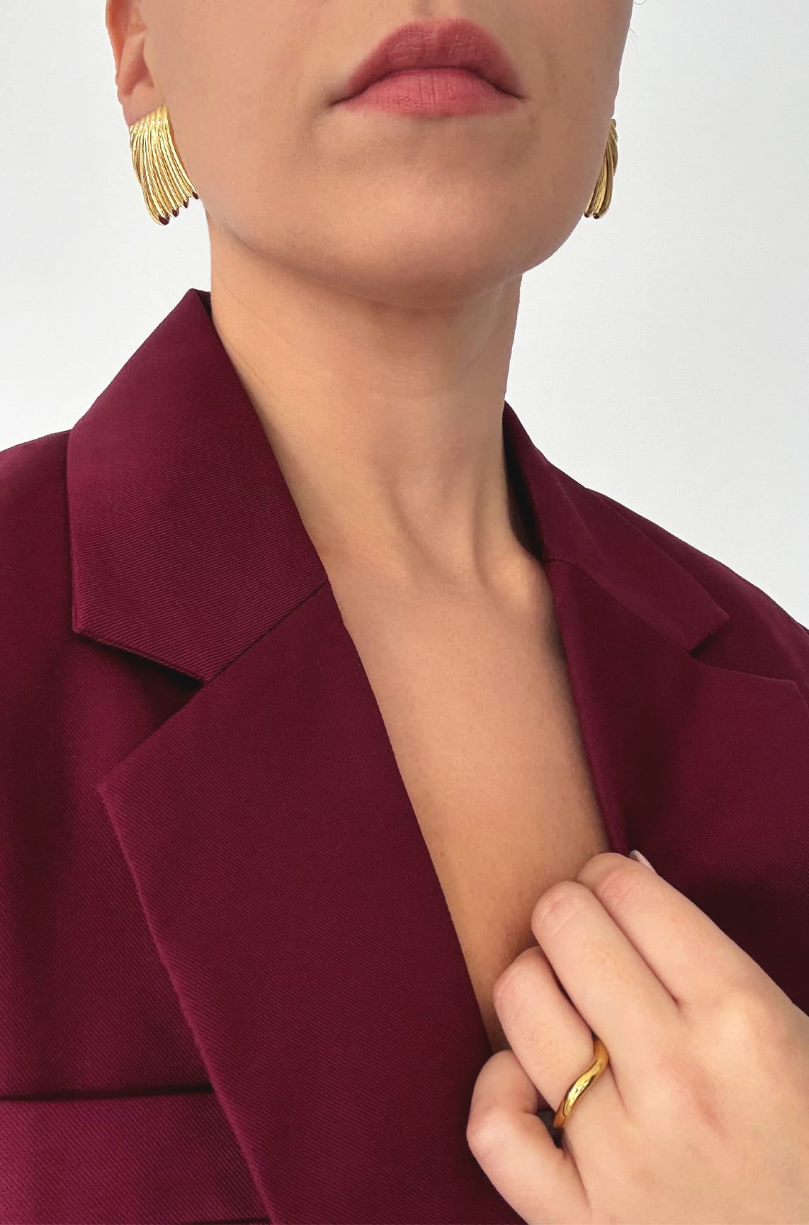 Bold, sculptural, and effortlessly cool. The Nova Earrings are your new everyday statement. Featuring a wide, contoured shape with soft ridges, they hug the lobe with just the right amount of drama. Inspired by retro glamour and modern minimalism, these earrings transition seamlessly from day to night, beach to bar. Lightweight and comfortable, the Nova Earrings are made to be worn and noticed.